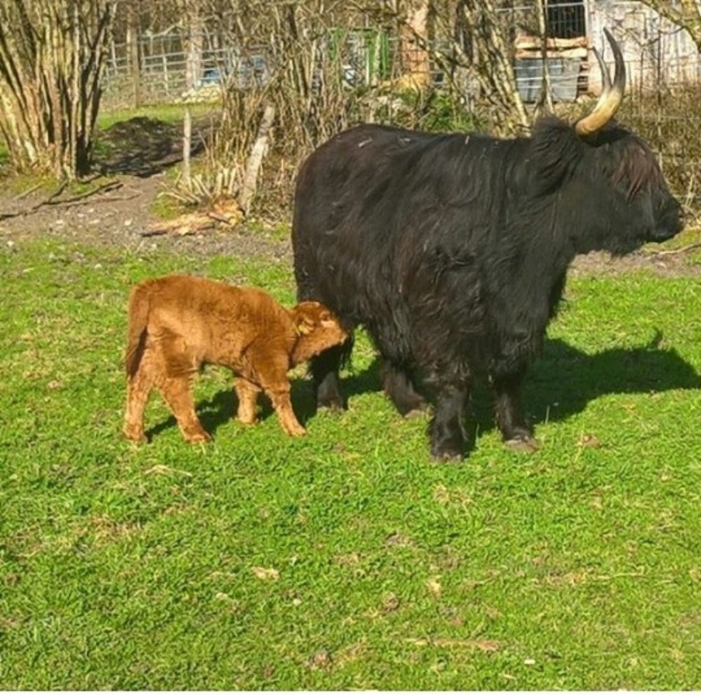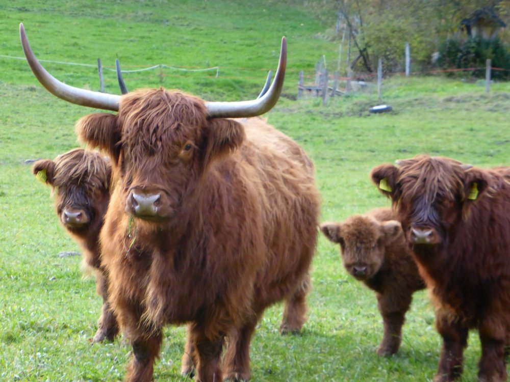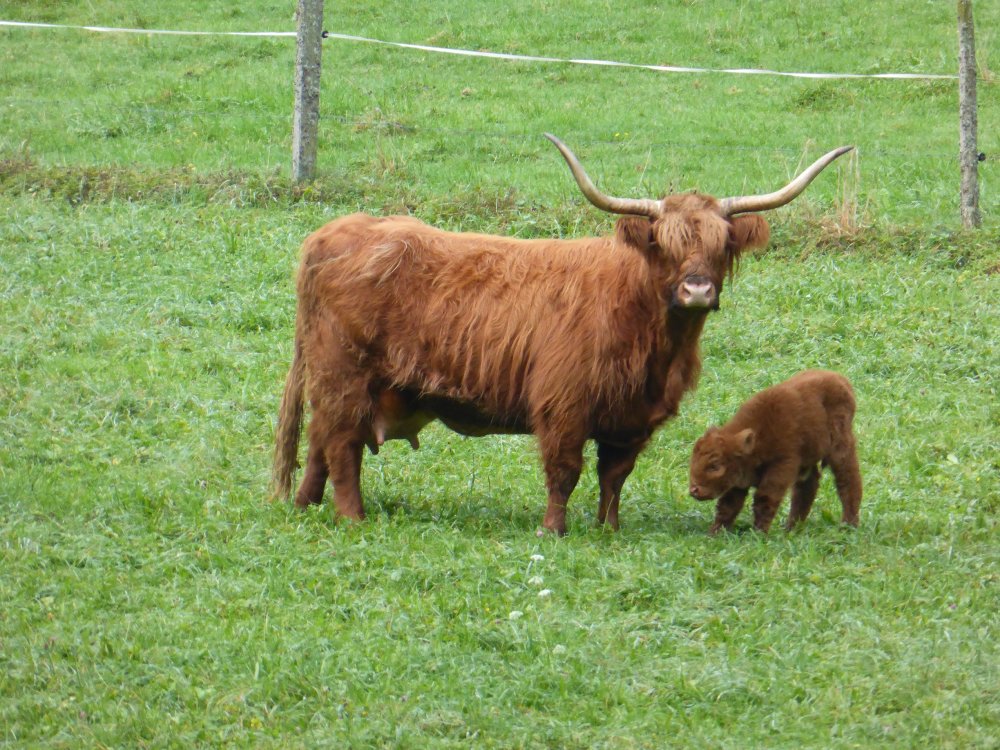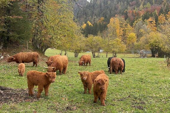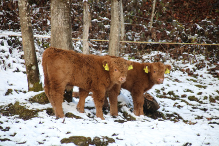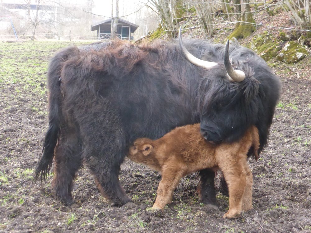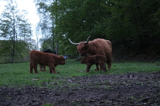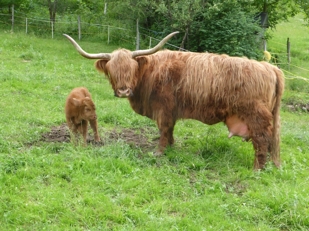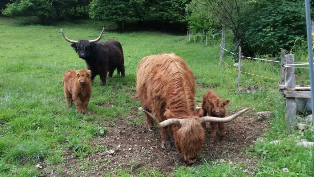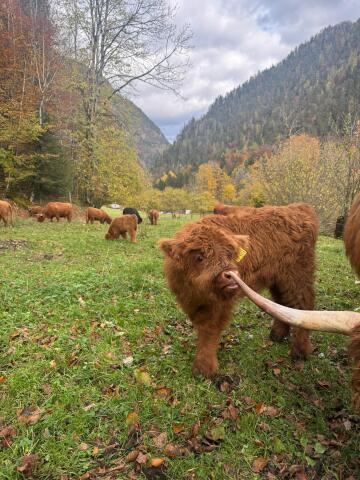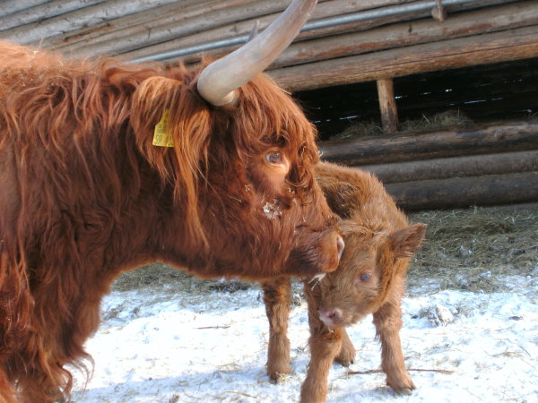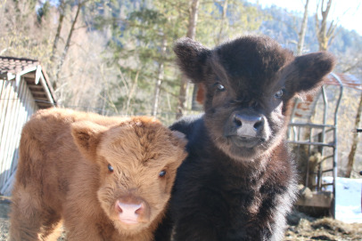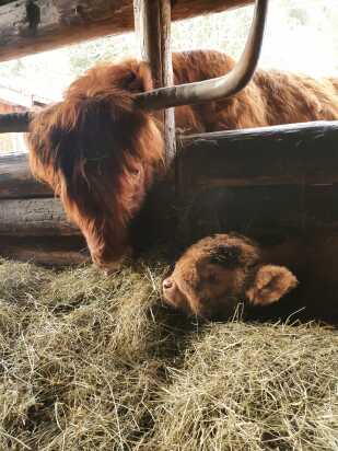 Der Abkalbezeitraum ab Spätherbst ermöglicht täglichen Kontakt mit der Herde mit viiieelen Striegel- und Streicheleinheiten für die Kälber und ihre Muttertiere. So werden die Kleinen von ganz allein handzahm, auch wegen ihrem Sonderzugang in den Stadel ;) . Besonders wohltuend für Mensch und Tier! |